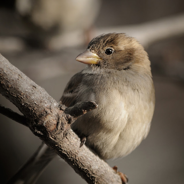 For my bird shots today, I have this lovely female Sparrow stealing food from the squirrel bowl!!